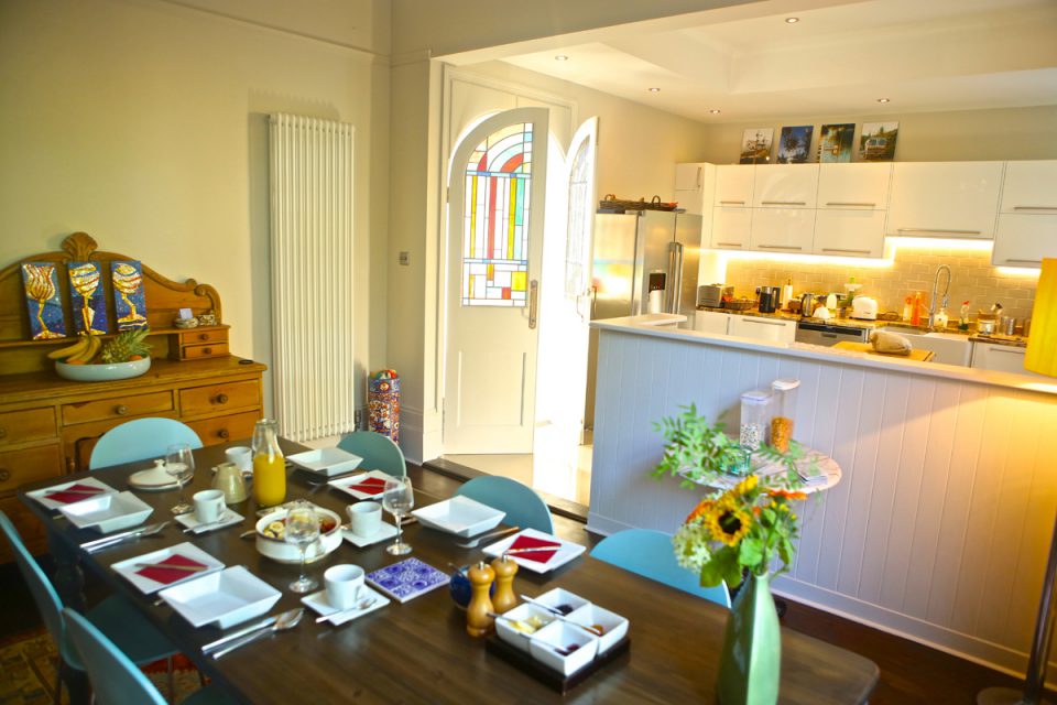 Breakfast is in the stylish dining room with a marble fireplace, overlooking the garden with 150 year old trees. Room price INCLUDES handsome breakfast.